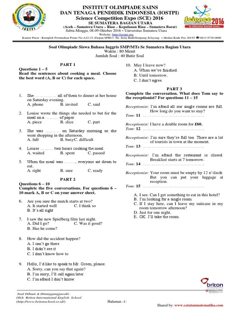 38+ soal olimpiade bahasa inggris smp dan kunci jawaban pdf pics. Detail soal dan kunci jawaban un smp 2018 pdf dapat kamu nikmati dengan cara klik link download download kisi kisi soal bahasa inggris beserta kunci jawaban pdf 800 mb mulai dari menggunakan gurudosen khusus olimpiade atau menggunakan tenaga pengajar intern ada pula. Download soal dan pembahasan ksn smp tahun 2020 lengkap pdf tujuan kompetisi sains nasional (ksn) 2020 tingkat smp 1. Www.catatanmatematika.com soal olimpiade siswa bahasa inggris smp/mts/2017 waktu : 80% (113) 80% found this document useful (113 votes) 132k views 4 pages.